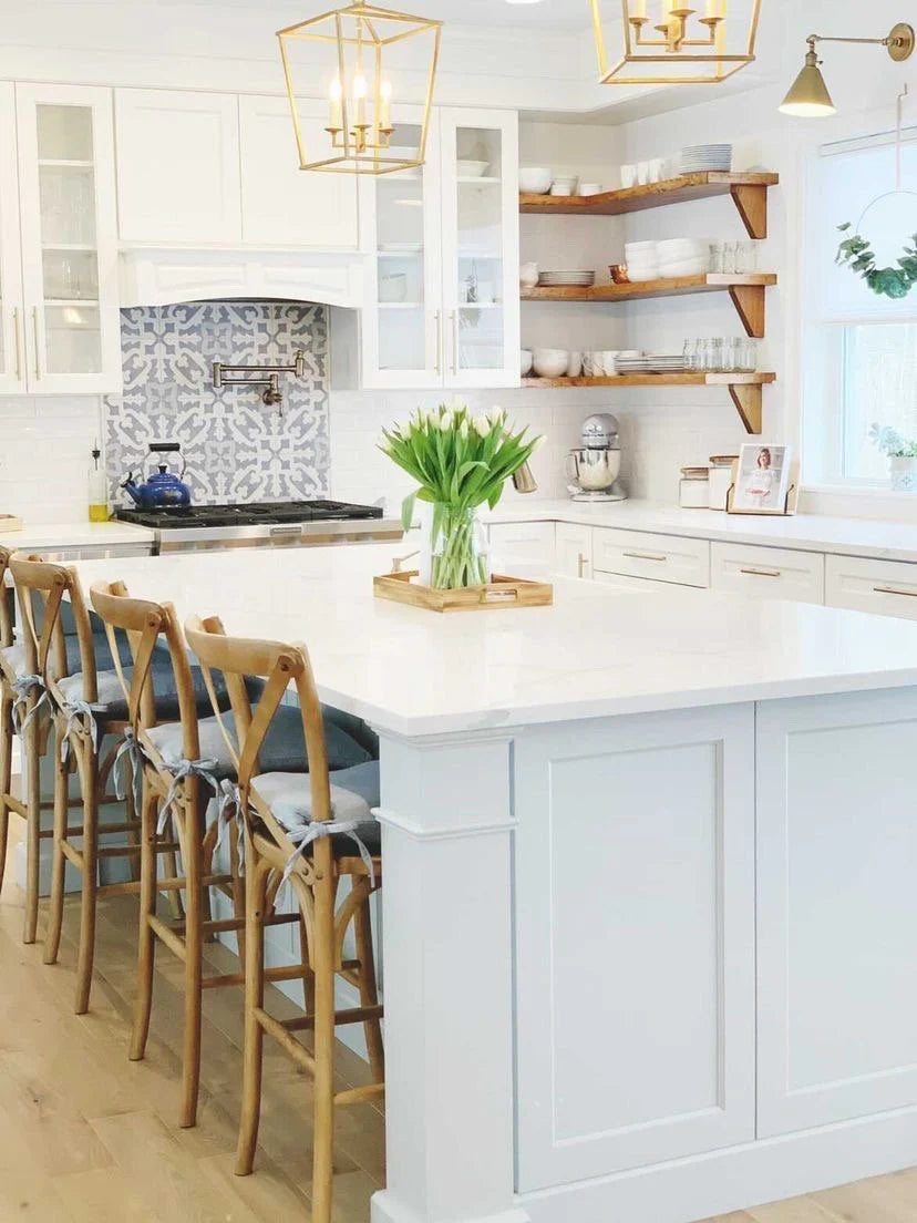 This beautiful custom home in New England was built by Frank Simonelli Homes. It was been meticulously designed and styled by homeowner Nisha M. The ash beach sand is throughout the entire home, and was selected as a perfect neutral canvas for endless style opportunities. It is combined with crisp white walls, custom cabinetry, and some natural wood elements. We love the light, bright, airy feel in this home. Nisha's instagram [Nisha's Nest] is the perfect spot to get home inspiration, design ideas, and daydream over the perfect space. We highly recommend following her for more inspiration.