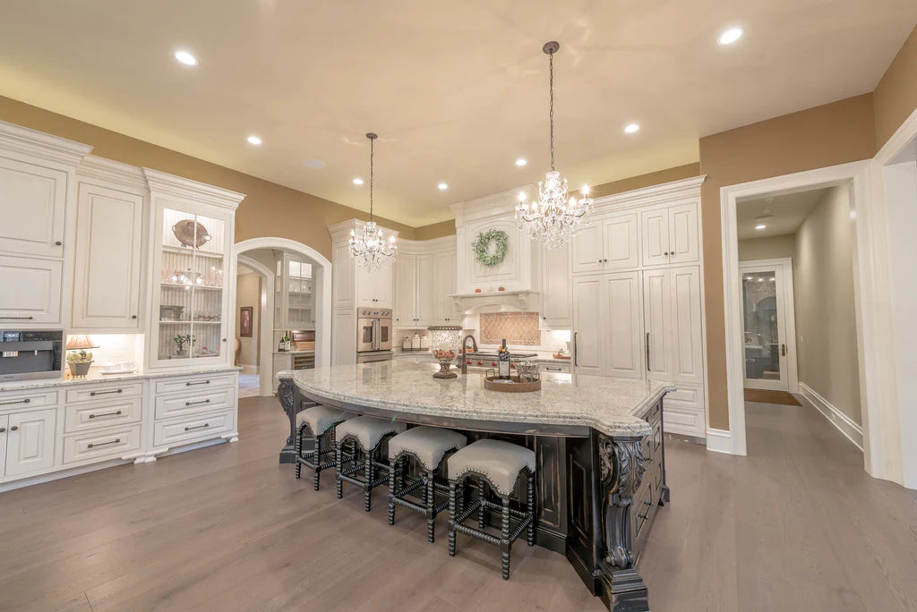 This breath-taking home has been diligently designed and customized by Daniel Devol Custom Builder Inc. It is a true craftsman build from the stunning kitchen to the unique wood features throughout, it is sure to give you house envy! Our Wide Plank White Oak Storm creates the perfect canvas for this home, adding some warmth and contrast to the unique design elements.