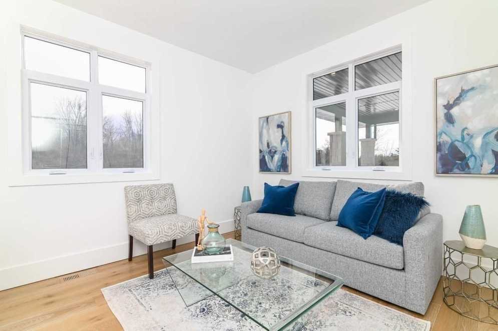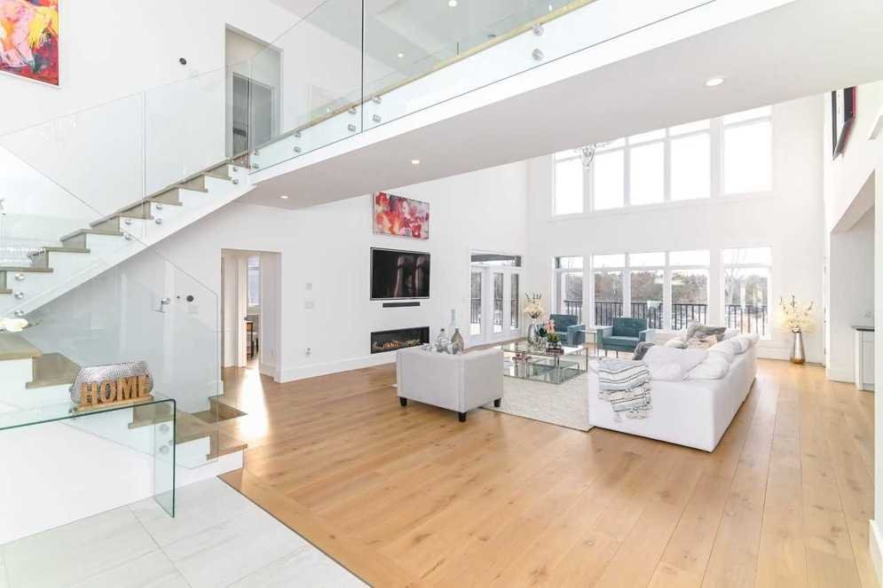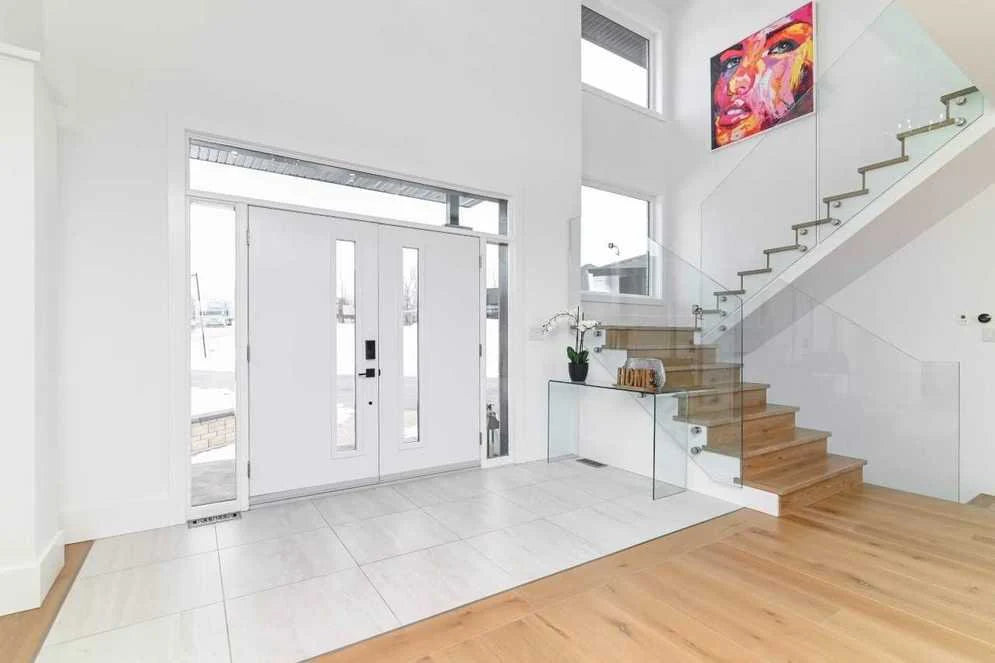 This custom new build in Prince Edward County is light, bright and airy. The white walls, windows, and feature staircase sets the tone for the beachy atmosphere in this home. Our 8" wide plank White Oak Beach Sand is the perfect neutral, while adding some warmth and depth to the space. This floor has a huge impact while enhancing the neutral tones in this home.