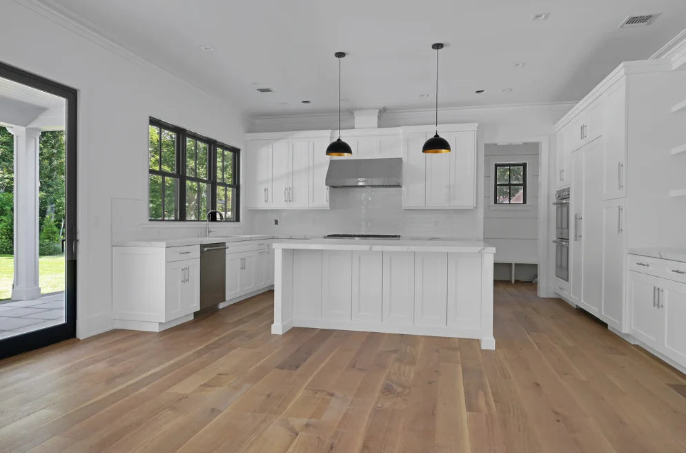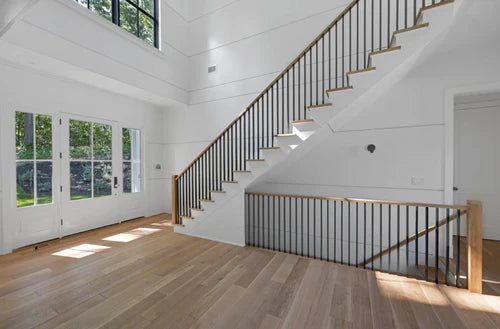 This lovely custom home built by BJC Luxury Homes features our 7" White Oak Live Sawn Natural Country Grade hardwood flooring.