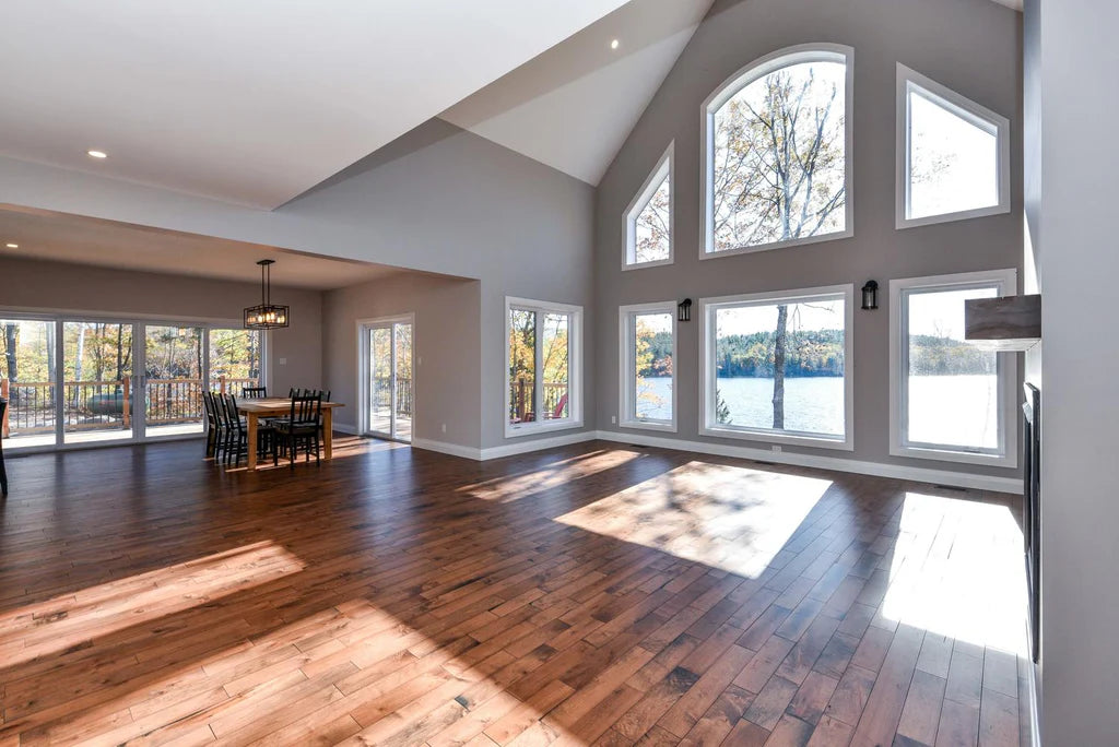 Beautiful waterfront home featuring our 4 1/4" maple floors in toffee. The toffee coloured floors add an element of warmth and country chic.